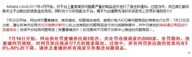 我相信在2017年6月和11月的时候,几乎所有人的店铺都被阿里强制删除了很多的产品,其实那会阿里就开始严肃商品了,阿里严肃的不单单是产品质量当然还有知识产权。在去年四月的时候阿里发布了对于问题产品的定义和规则,其中重复铺货就是表现最严重的问题,常常一个类型的产品就发布了几十条。采购商在搜索和筛选过程困难重重,甚至在找到了目标产品后想在店铺中再找同类产品都非常困难。而卖家呢,为了维持店铺的流量和曝光拼命的铺货,整个平台陷入了恶性循环。