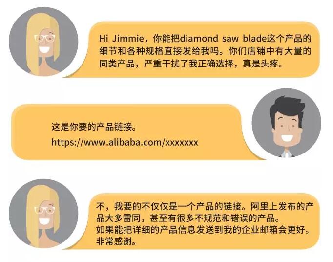 客户:Hello Jimmie,could you please send me my pointed diamond saw blade directly.there are so many duplicated products in your store. they are really big trouble which seriously effect my right selection .