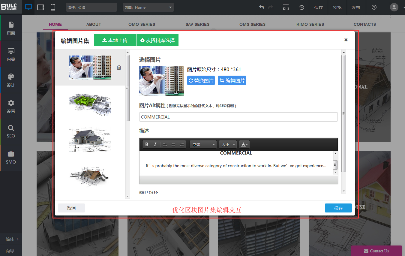 1、优化区块的图片集上传以及更换图片交互模式,让图片集相关的区块能够自由添加、更改、删除图片,提高交互体验;